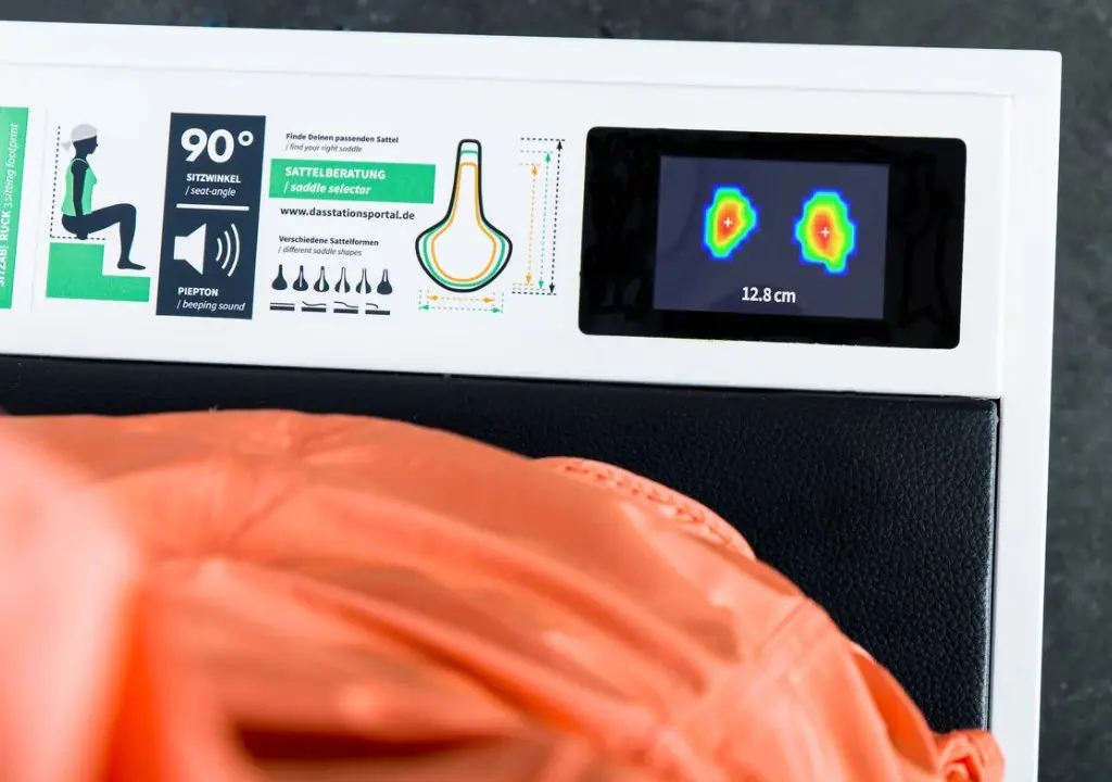 - Ergebnis nutzen: Der Sitzknochenabstand wird sofort auf dem Display oder Ihrem Tablet angezeigt. Über den Connector erhalten Sie direkt die passende Sattelempfehlung aus Ihrem Sortiment.